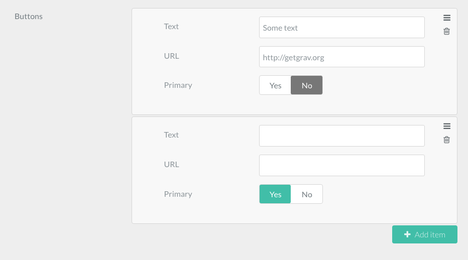 controls | “Add Item” ボタンをどこに追加するか決めます。 `[top |