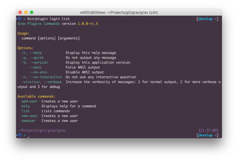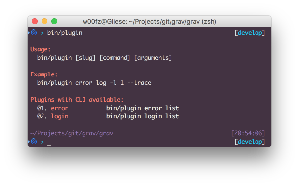 プラグインは、 Grav の CLI bin/plugin と統合でき、特定のタスクをターミナルから実行することで、プラグイン機能を強化します。