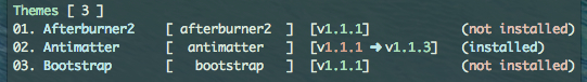 たとえば、とても古いバージョンの Antimatter テーマ(v1.1.1)があり、最新バージョンが v1.1.3だったとき、以下のようにすぐにわかります。