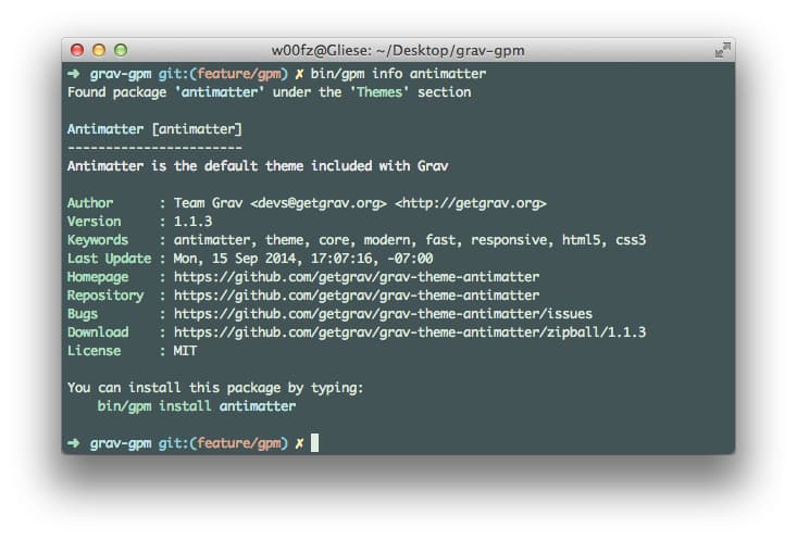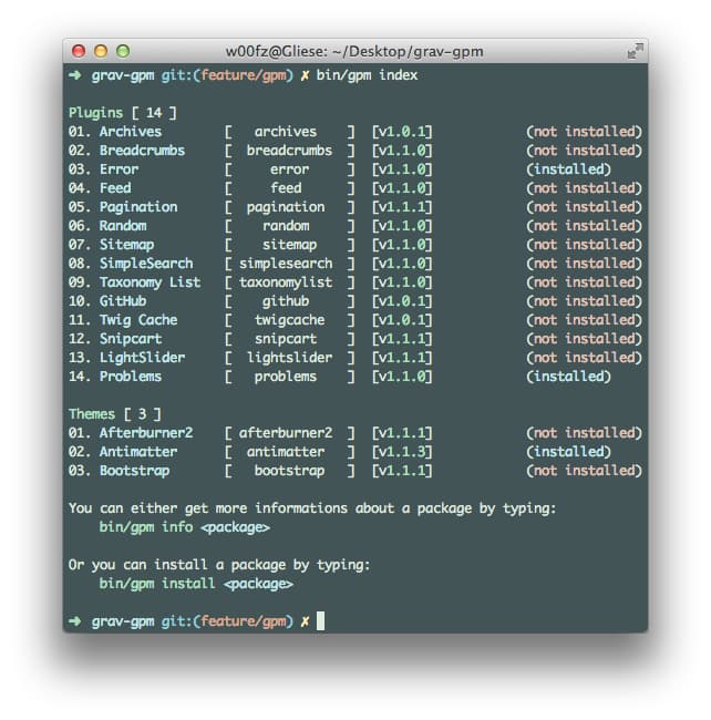 Grav CLI と同様、 GPM は、MacOSにおける Terminal のような、コマンドラインインターフェースを通じてコマンドを実行する、コマンドラインツールです。
