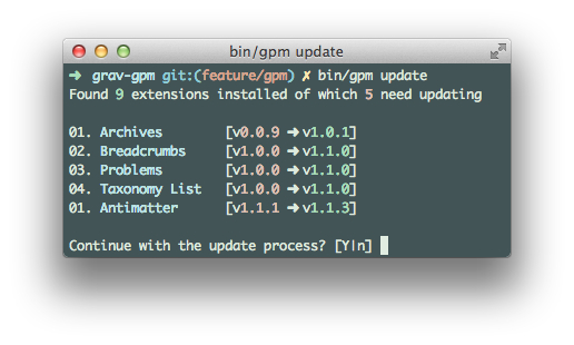 バージョン 0.9.3 をリリース以降、 Grav には GPM (Grav パッケージマネージャ)が搭載されています。