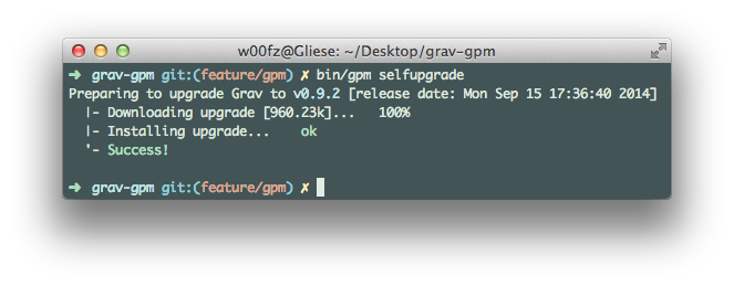 self-upgrade (もしくは、 selfupgrade ) コマンドにより、 Grav を最新バージョンにアップデートできます。