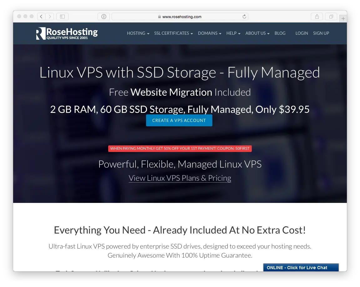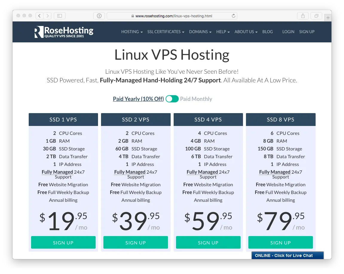 かつて 2001 年には、 RoseHosting は、商用の Linux 仮想サーバを提供する世界最初にして唯一の会社でした。現在では、 Linux ホスティングパッケージを幅広く提供しています。 エンタープライズ向け SSD ストレージ による Linux VPS も含まれます。すべてのホスティングプランは、 完全に管理 され、24時間毎日無料サポート が付属します。よって、自由に Grav をインストールし、セットアップできます。